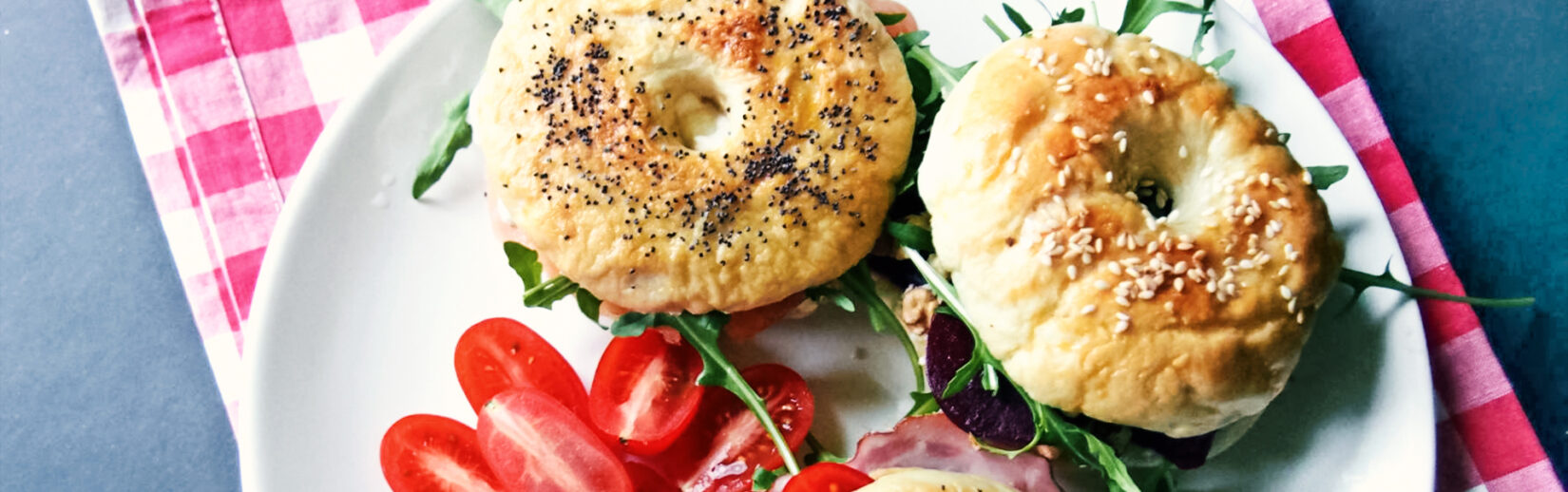 Z czym podawać bajgle? Z czym dusza zapragnie. Doskonale będą smakować wypełnione ziołowym twarożkiem, prosciutto, mozzarellą i pomidorami. Z seriali najbardziej znana jest wersja z koperkiem, serkiem marki Philadelphia i plastrami łososia. Ja przygotowałam dziś trzy wersje słone i jedną słodką – wszystkie warte są wypróbowania. Polecam korzystać z lokalnych składników – bryndzy, oscypków, kiełbasy lisieckiej czy suski sechlońskiej.