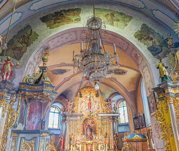 Za Trybszem niebieski szlak odbija w stronę Łapszanki, a my pozostajemy na drodze św. Elżbiety. Można śmiało rzec – premia górska! Dla kolarzy Tour de Pologne 2020 to fragment 4. królewskiego etapu wyścigu. My go pokonujemy wprawdzie w odwrotnym kierunku, ale po tej samej nawierzchni, w otoczeniu tych samych łagodnych wzgórz, z których dochodzi sielankowy dźwięk dzwonków. Białe kudłate plamki na tle soczystej zieleni nie pozostawiają wątpliwości – to nie wróżki, to owce.